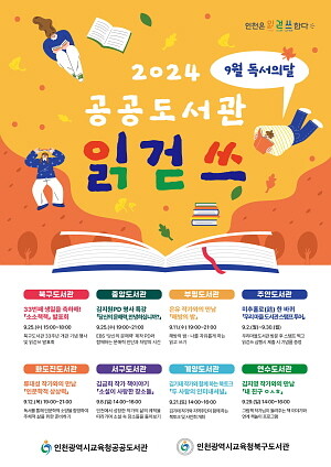 특히, 북구도서관은 인천시교육청 대표 도서관으로서 9월 독서의 달 읽걷쓰 행사를 널리 알리기 위해 8개 공공도서관 공동 홍보 포스터를 제작해 인천시교육청 전 기관과 지역 관계기관에 배포한다.