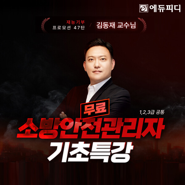 강의는 에듀피디 소방안전관리자 전임 김동재 교수가 맡아 기초용어 및 소방시설 종류 등의 효율적인 암기법을 알려주고 영역별 최신 출제경향 분석으로 가장 효율적인 학습방향을 제시해 줘 초보자들의 수월한 학습 입문을 돕는다.