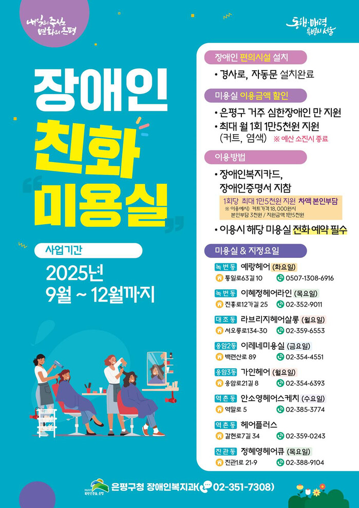구는 2025년 서울시 약자와의 동행 자치구 지원사업 공모에 선정돼 지난 5월 1일부터 은평구형 장애인 친화미용실을 운영해 왔다.