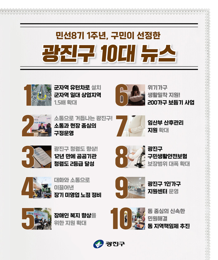 | ▲ 광진구민이 뽑은 10대 뉴스 순위.(사진=광진구청 제공) |