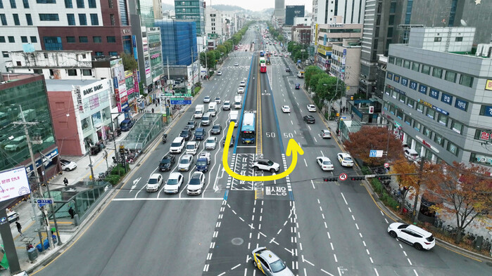 | ▲ 군자역 사거리 유턴차로 설치.(사진=광진구청 제공) |