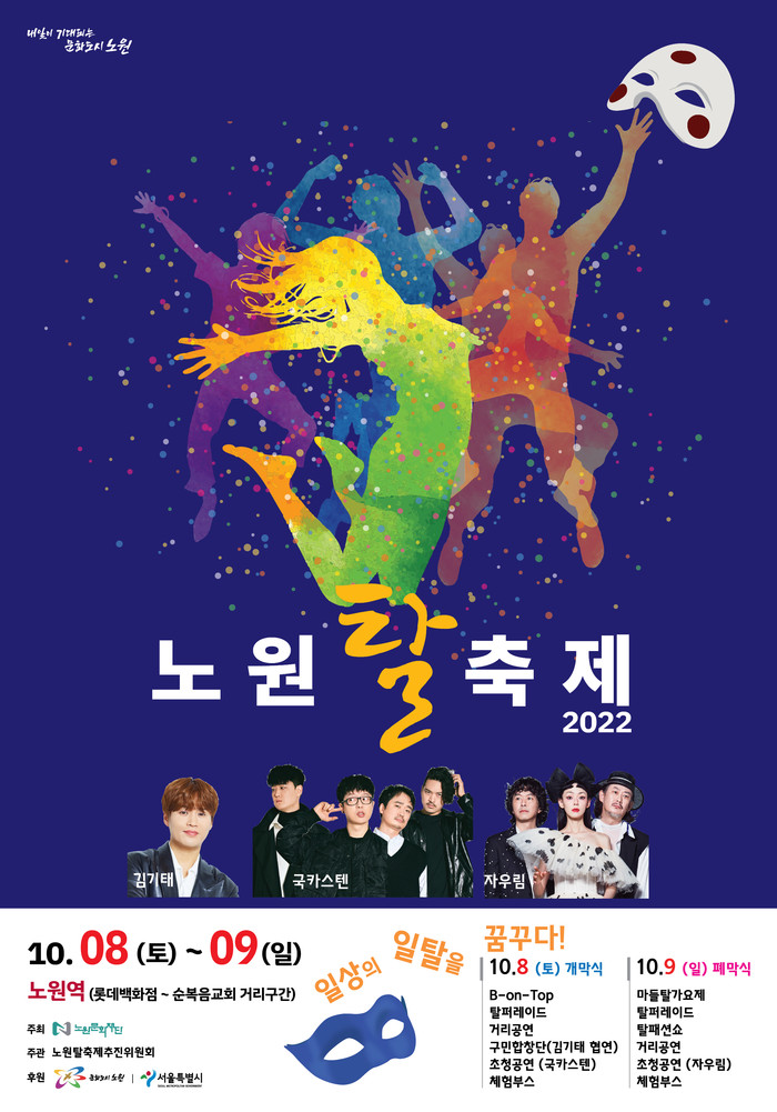[시민일보 = 홍덕표 기자] 서울 노원구(구청장 오승록)가 오는 8~9일 롯데백화점~순복음교회 앞 555m 구간에서 '2022 노원 탈축제'를 개최한다.