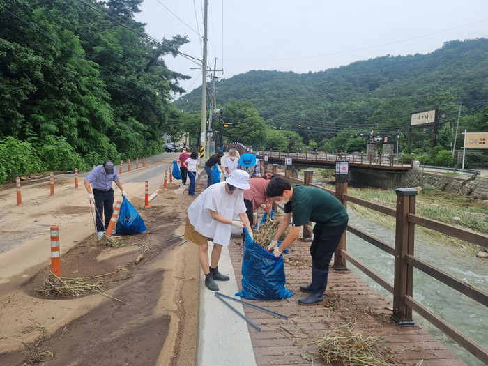 효자동 통장협의회 주도로 이뤄진 이번 활동에는 통장협의회 및 공무원 등 20여 명이 참여해 솔내음 누리길과 폭우로 범람한 창릉천변 곳곳을 정리하고 부유물과 쓰레기를 집중 수거했다.