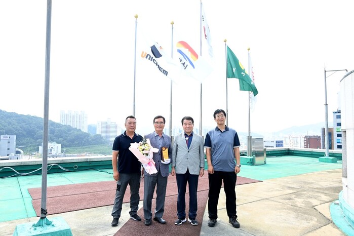 [김천=박병상 기자] 김천시는 8월 이달의 기업으로 ㈜유니켐(대표 김장근)을 선정하고 지난 9일 김천시청에서 선정패 전달식 및 회사기 게양식을 했다.