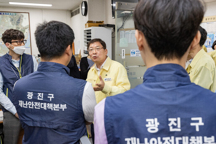 | ▲ 김 구청장이 광진구 재난안전대책본부 관계자들과 이야기를 나누고 있다. |