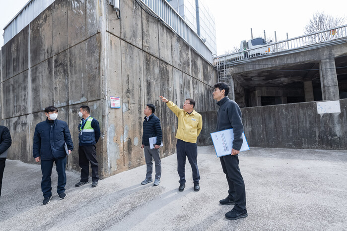 | ▲ 김 구청장이 공사장 안전점검을 하고 있다. |