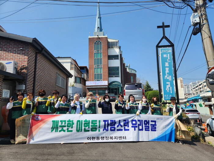 이현동 여성민방위기동대원는 28일 대원 15명이 참여한 가운데 쓰레기 불법투기 구역을 중심으로 관내 환경정비를 실시하여 은혜교회 주변 약 1㎞ 구간을 말끔히 청소하였다.