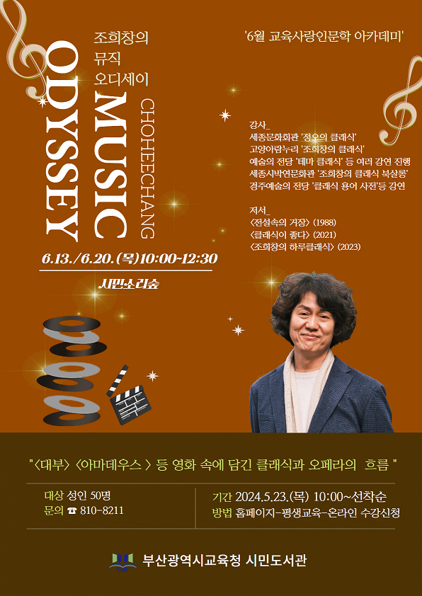 강의를 진행하는 조희창 강사는 ‘조희창의 에센셜 클래식’, ‘클래식이 좋다’ 등 도서를 저술하고 지역의 문화회관, 예술의 전당 등에서 클래식 관련 강좌를 다수 진행했다.