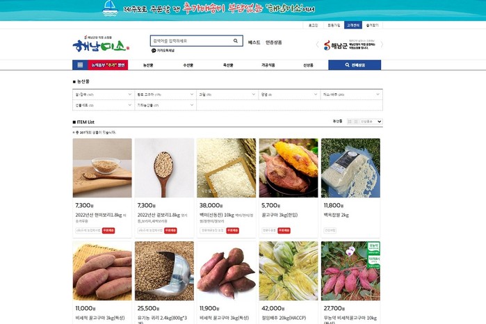 한편 해남군에서 직영하는 온라인 쇼핑몰인‘해남미소’는 해남군내 480개 농어가가 입점해 1,500여 개 상품을 판매하고 있다.