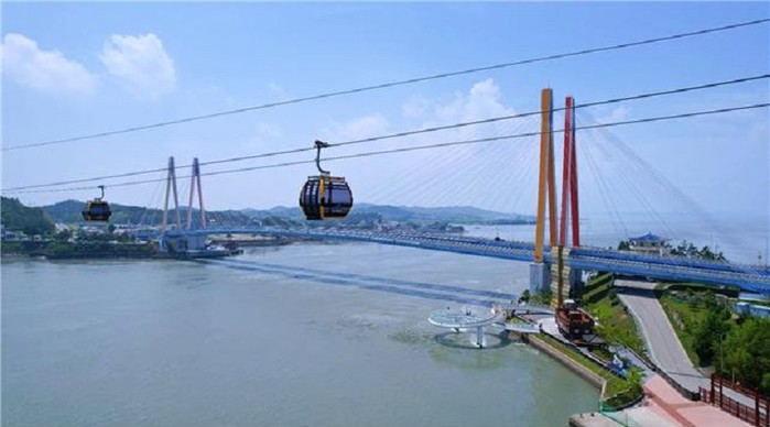 | ▲ 명량해상케이블카가 이순신 장군의 해전으로 유명한 해남군과 진도군 사이를 흐르는 명량해협을 오가고 있다. / 사진=명량해사케이블카 제공 |