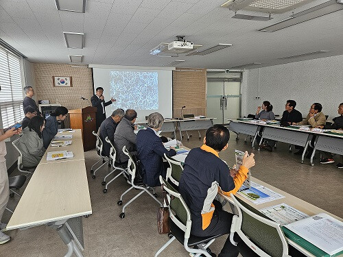 | ▲ ‘2024년 하반기 밀양시 소나무재선충병 방제사업 설명회’에서 재선충병 관련 설명을 하고 있다. |