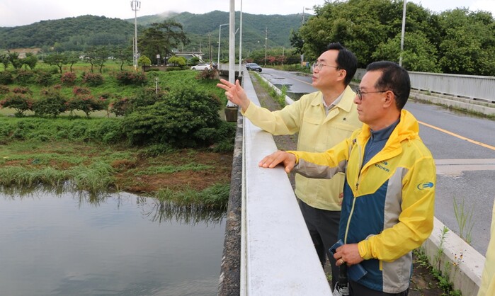 | ▲ 집중호우에 대비해 남평읍 지석천 지석교 현장을 방문한 윤병태 나주시장(출처=나주시) |