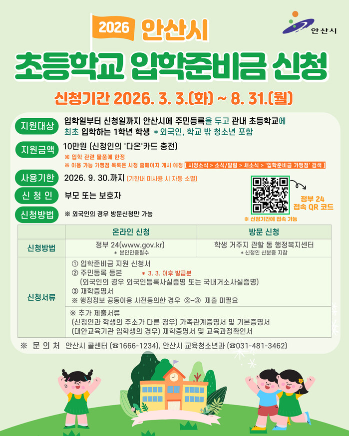 | ▲ 안산시 입학준비금 지원 안내 디지털 홍보자료 /자료제공=안산시 |