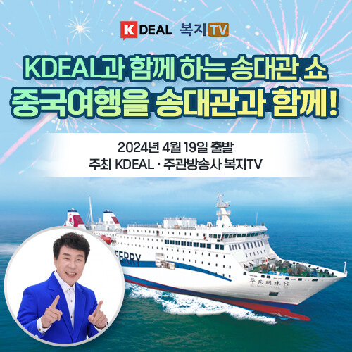 K딜이 주최한 '3박 4일 중국 화동 훼리 크루즈 여행'은 오는 4월19일에 출발해 가수 송대관과 함께 하는 초특가 관광 효도 상품으로, 송대관과 함께 하는 신나는 트로트 공연, 가수들과 함께 하는 가요 경연 대회가 펼쳐질 예정이다.