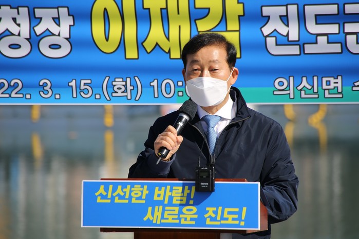 15일 이 전청장은 진도의 대표브랜드 김 생산 및 경매 현장인 진도 수품항에서 기자회견을 통해“ ‘소득증대되고, 행복지수가 높아지며, 미래대비가 확실한 보배의 섬 진도를 만드는데 앞장서겠다“며”대전환의 시대에는 소통과화합의 리더심을 갖춘 행도하는 젊은 군수가 필요하다”고 강조했다.