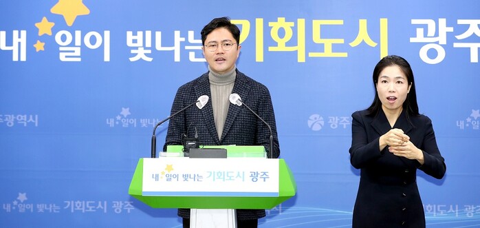 | ▲ 김광진 광주광역시문화경제부시장이 21일 오전 시청 5층 브리핑룸에서 ‘대유위니아 사태 해결을 위한 광주광역시 대응’ 관련 브리핑을 하고 있다. / 광주광역시 제공 |