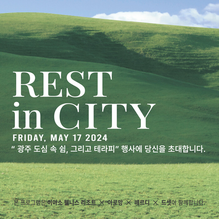 한편, 떼르디x아로망x이아소 웰니스 리조트x드셋 “REST IN CITY, 쉼 그리고 테라피”는 2024년 5월 17일 금요일 12:00부터 18:30까지 이아소 웰니스 리조트에서 열린다.