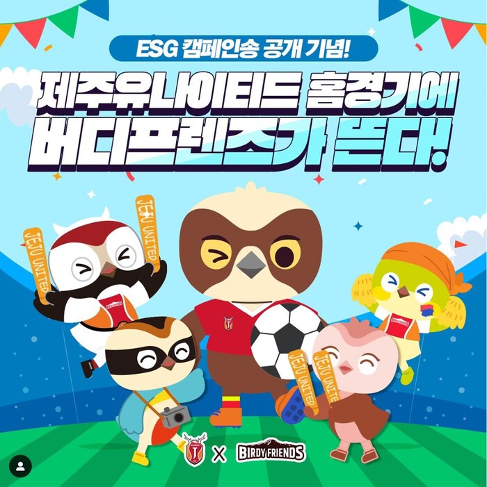 홈경기 당일 제주월드컵경기장 외부광장 버디프렌즈 특별 부스에서 펼쳐지는 이번 행사는 ESG 후크송 ‘WE LOVE EARTH‘ 댄스 챌린지, 버디프렌즈X제주유나이티드 무료 응원 타투, 버디프렌즈 탈인형 깜짝 응원단 등의 다영한 프로모션이 개최해 시선을 집중시킨다.