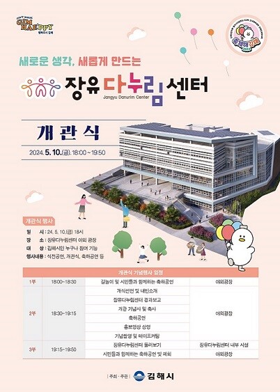 [김해=최성일 기자] 김해시는 오는 10일 오후 6시 장유다누림센터 야외광장에서 센터 개관식을 개최한다고 7일 밝혔다.