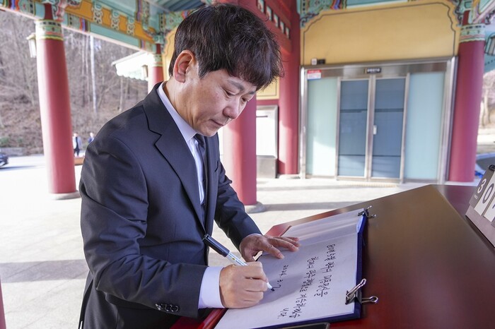 | ▲ 이상갑 광주광역시문화경제부시장이 7일 오전 북구 국립5·18민주묘지를 찾아 방명록을 작성하고 있다./광주광역시 제공 |