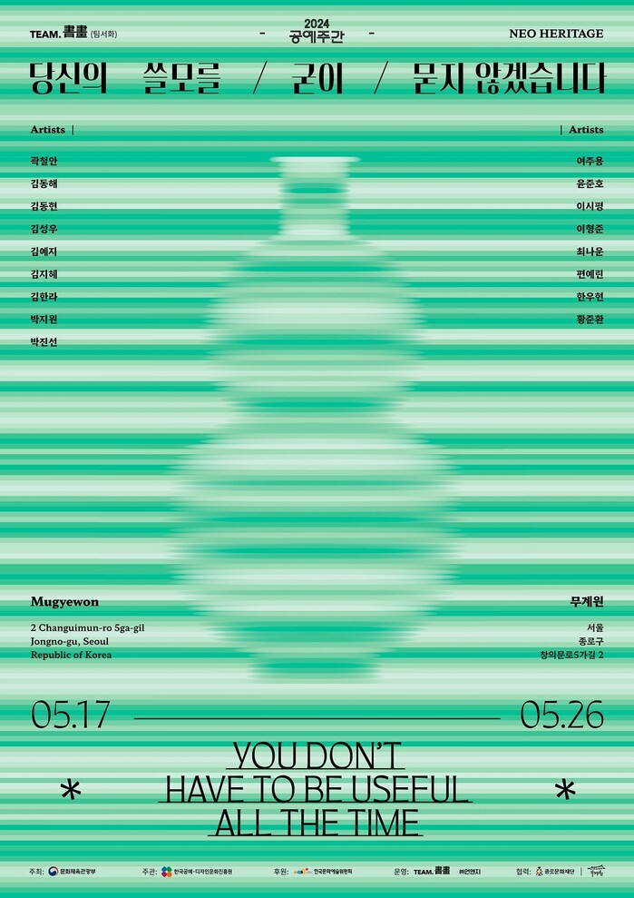 [시민일보 = 이대우 기자] 서울 종로구(구청장 정문헌)가 부암동 전통문화공간 무계원에서 26일까지 대외협력 전시 「당신의 쓸모를 굳이 묻지 않겠습니다」를 진행한다.