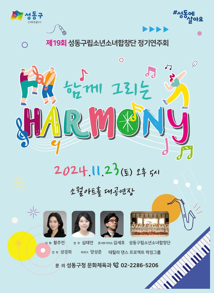 [시민일보 = 박소진 기자] 성동구(구청장 정원오)는 오는 23일 오후 5시 소월아트홀에서 ‘제19회 성동구립 소년소녀합창단 정기연주회’를 개최한다.