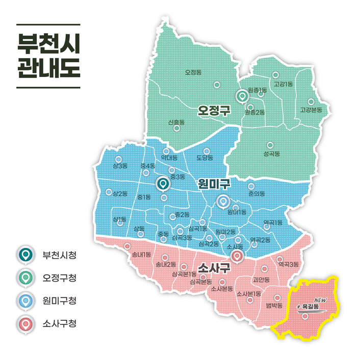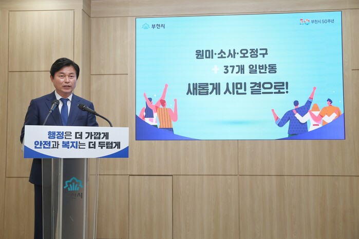 이번 행정 체제 개편으로 기존 10개 광역동은 폐지되고, 원미구·소사구·오정구 등 3개 구와 37개 일반동이 새롭게 설치된다.