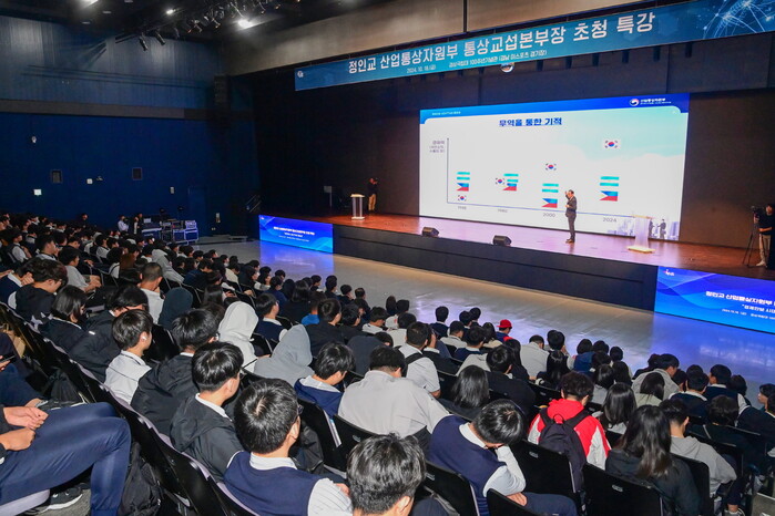 산업통상자원부(장관 안덕근, 이하 산업부) 정인교 통상교섭본부장은 10.18(금) 오후 진주시(시장 조규일)에 위치한 경상국립대 100주년 기념관에서 자유무역협정(FTA) 및 통상 정책의 중요성에 대해 특별 강연을 진행하였다.