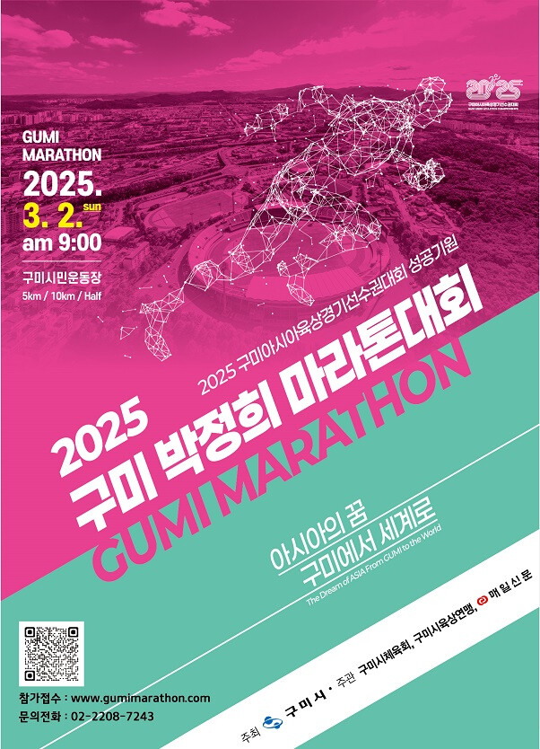 [구미=박병상 기자] 구미시는 오는 3월 2일 개최되는 「2025 구미 박정희 마라톤대회」가 전국 마라톤 동호인들의 뜨거운 관심을 받고 있다.