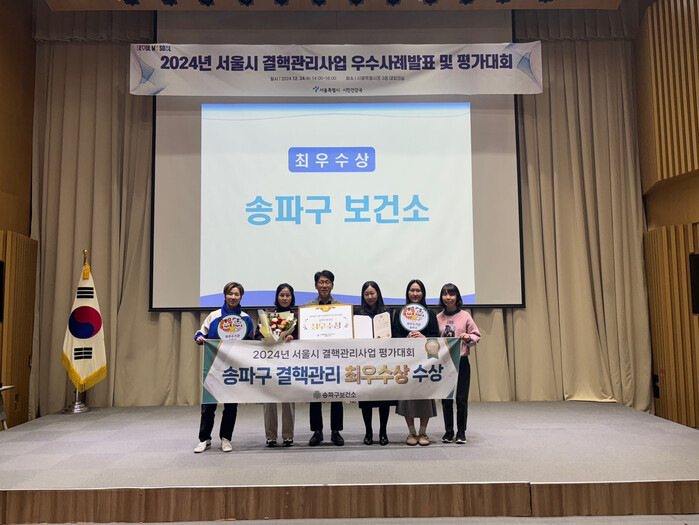 [시민일보 = 이대우 기자] 서울 송파구(구청장 서강석)가 서울시에서 개최한 ‘2024 서울시 결핵관리사업 평가대회’에서 최우수기관으로 선정됐다.