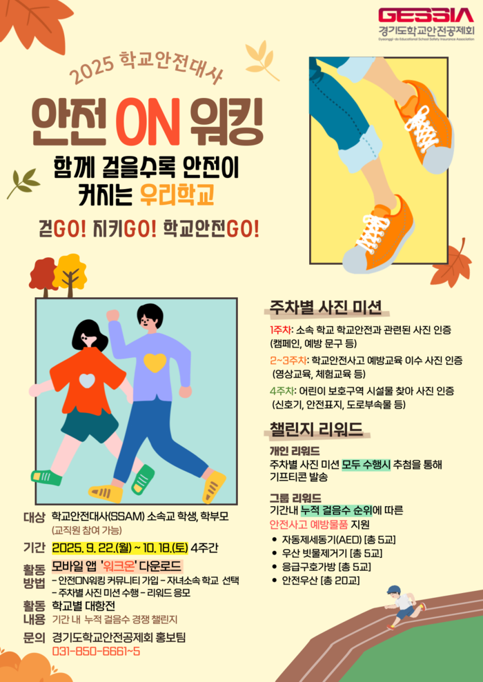 이번 챌린지는 학생·학부모·교직원이 함께 걷기 활동과 안전 미션을 수행하며, 학교 주변 안전의식과 생활 속 안전 실천을 확산하기 위한 캠페인으로 진행됐다.