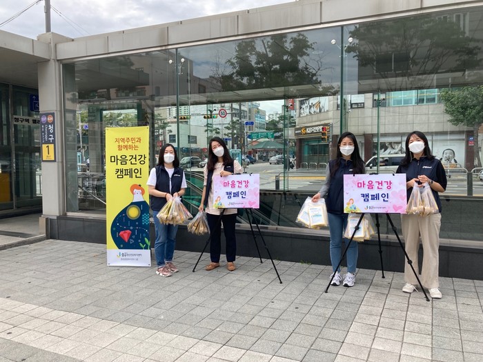 | ▲ 참여자들이 마음건강 캠페인을 진행하고 있다.(사진제공=중구청) |