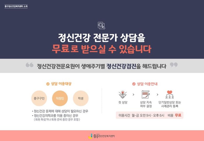 | ▲ 중구정신건강복지센터 안내문.(사진제공=중구청) |