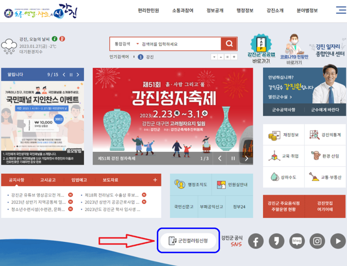 | ▲ 통화연결음 신청 페이지 이미지 / 강진군 제공 |
