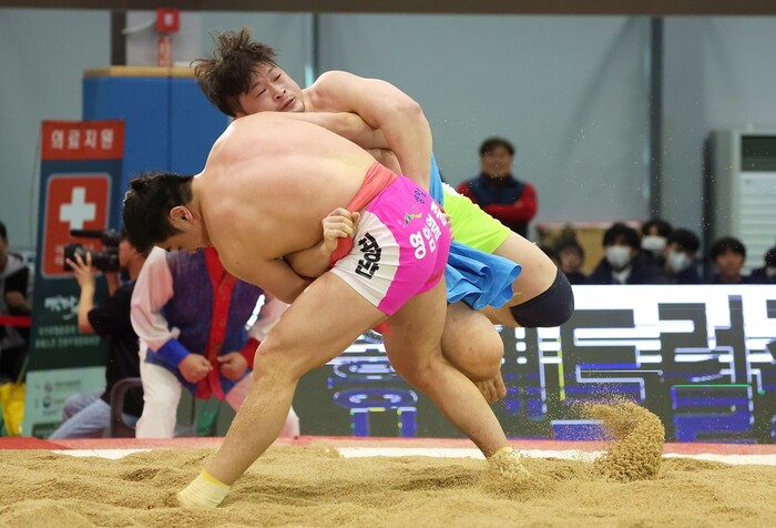 | ▲ 영암군민속씨름단 경기장면 / 영암군 제공 |