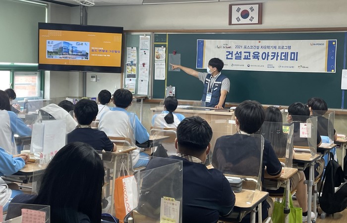 | ▲ 중학생 자유학기제 건설교육 아카데미 진행 모습. (사진제공=포스코건설) |