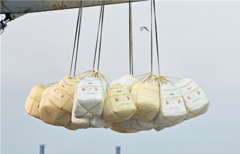 | ▲ <하역 중인 염화칼슘. (주)제일트레이딩 제공> |