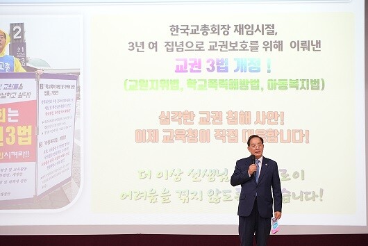 하 교육감은 ▲교사와 학교장의 민원 대응 방법 ▲교육청 법률지원팀의 악성 민원 대응 ▲교육활동 침해 피해 교원에 대한 법률지원, 치료비·치유비 지원 내용 등을 설명했다.