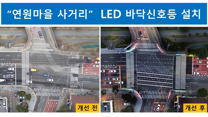 이번 연원마을사거리 LED 바닥신호등 설치로 인해 야간 혹은 비가 많이 내리는 날에도 보행자는 물론 운전자 또한 시야 확보가 용이해 교통사고 예방에도 큰 효과가 있을 것으로 보인다.
