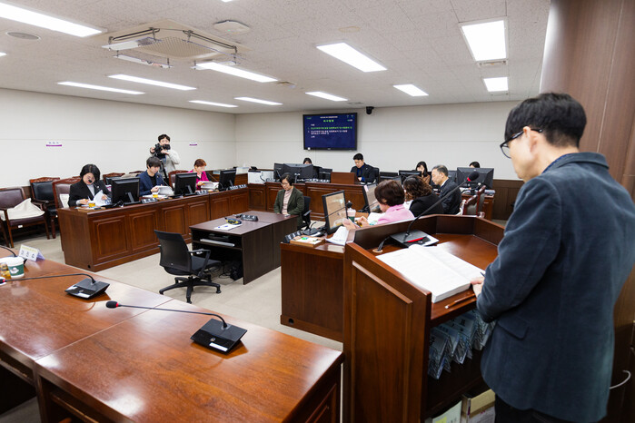 | ▲ 안산시의회 의회운영위원회가 지난 26일 의회 제2상임위원회 회의실에서 (재)안산미래연구원 원장 임명 후보자에 대한 인사청문를 진행하고 있는 모습 /사진제공=안산시의회 |