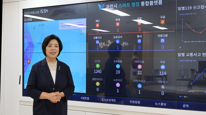 | ▲ 과천시 스마트 행정 통합플랫폼을 설명하고 있는 신계용 시장. (사진=과천시청 제공) |