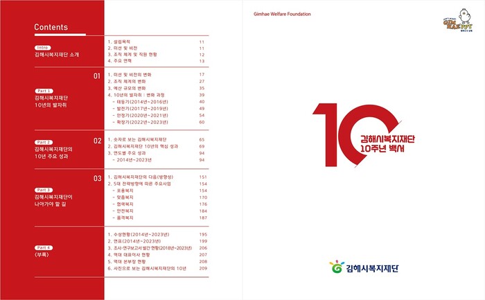 최정규 대표이사는 “10주년 백서 발간을 통해 재단의 과거와 현재를 조명하고 미래의 도약을 위한 발판을 마련하여 시민이 행복한 복지도시 김해를 만드는데 최선을 다하겠다.”라고 전했다.