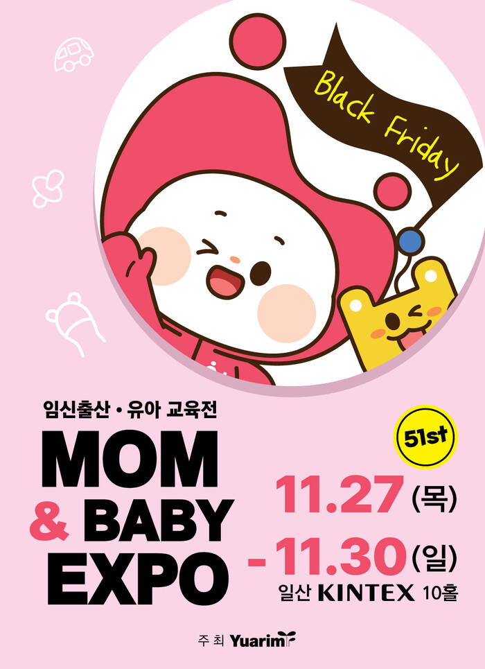 이번 박람회는 임신·출산·유아·교육 분야의 대표 브랜드 250여 개사, 1,000여 개 브랜드가 참가해 연말 육아 쇼핑 시즌의 대규모 세일과 풍성한 육아 정보를 한자리에서 제공하는 종합 박람회로 꾸며진다. 특히 연말 특가를 앞세운 ‘육아용품 블랙프라이데이’가 주요 관전 포인트가 될 전망이다.