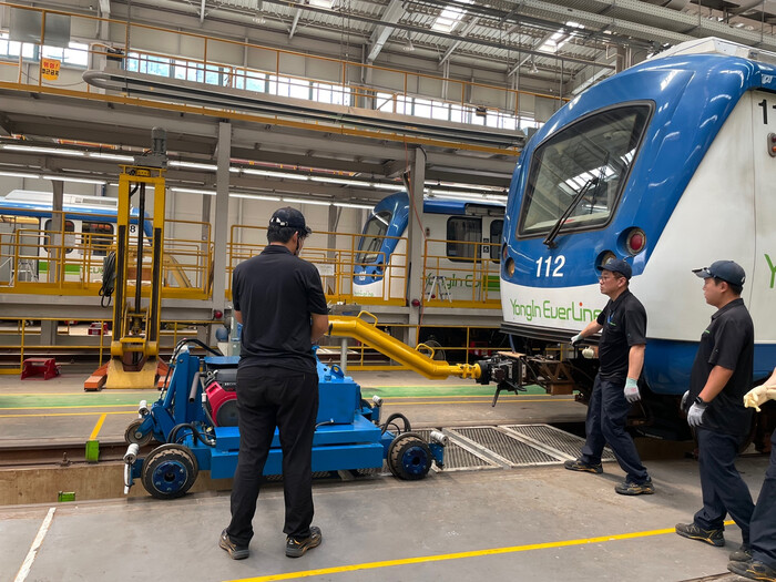 | ▲ 용인특례시와 한국철도기술연구원이 협력해 추진한 열차 자동운전용 핵심 통신장치 국산화 시험운전 준비 모습. |