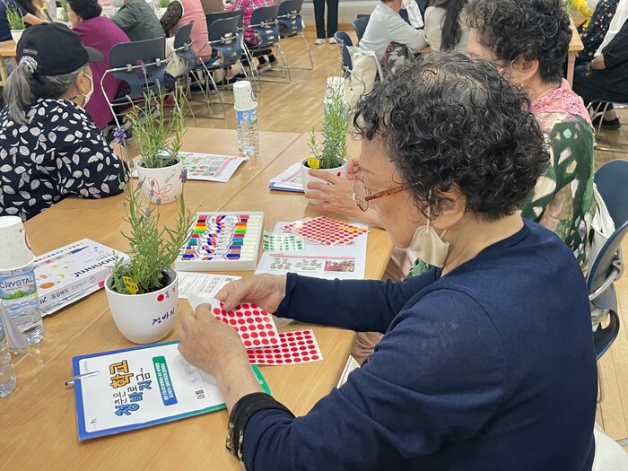 민(전문강사)·관(치매안심센터, 정신건강복지센터 등)·학(동국대학교 체육대학원)이 힘을 합쳐 ▲웃음치료 ▲근력강화 운동 ▲소근육 강화 운동 ▲치매예방 ▲문학치유 ▲원예치료 등 신체 건강과 정신건강을 고루 키울 수 있도록 균형 있게 프로그램을 구성했다.