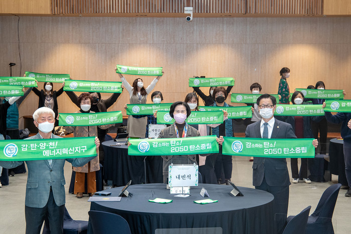 선포식에서 낭독된 선언문에는 ▲탄소중립을 위한 친환경 에너지 사용과 에너지 절약 실천, ▲탄소중립을 위한 사업 발굴과 지원 추진 ▲기후변화 대응을 위한 홍보 · 교육, ▲구민과 상호 소통하는 ESG 경영 실현 등의 내용이 담겼다.