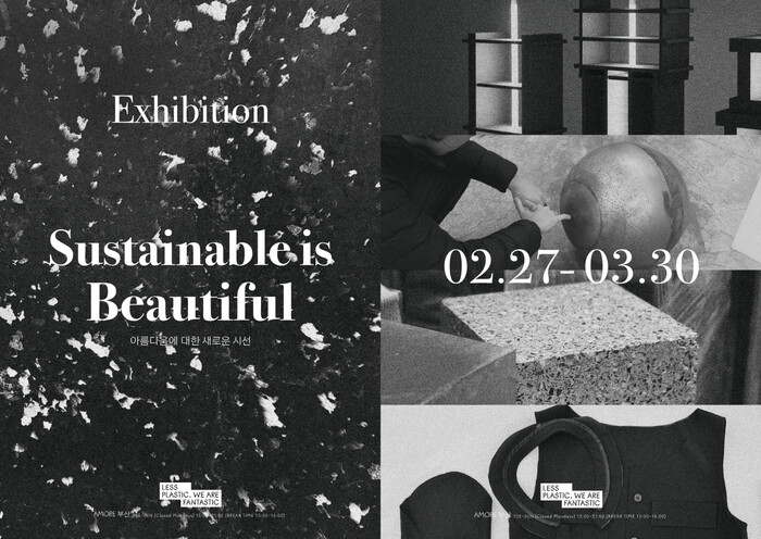 아모레퍼시픽의 ‘Sustainable is Beautiful’ 전시는 플라스틱 절감캠페인 ‘LESS PLASTIC. WE ARE FANTASTIC!’의 일환으로, 쓰임을 다하고 버려지는 재료지만 새로운 시선을 통해 아름다움을 제시할 수 있다는 점에 착안해 기획했다. 일상에서 버려지는 플라스틱과 쓰임을 다한 폐기물을 활용하여 아름다움을 만들어 낸 5명의 크리에이터 크루(김하늘, TRU, 심형준, tuuk, 오유경)의 작품과 아모레퍼시픽 디자이너들의 지속가능 프로젝트 결과물을 만나볼 수 있다.