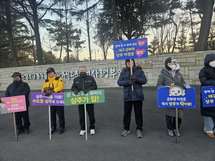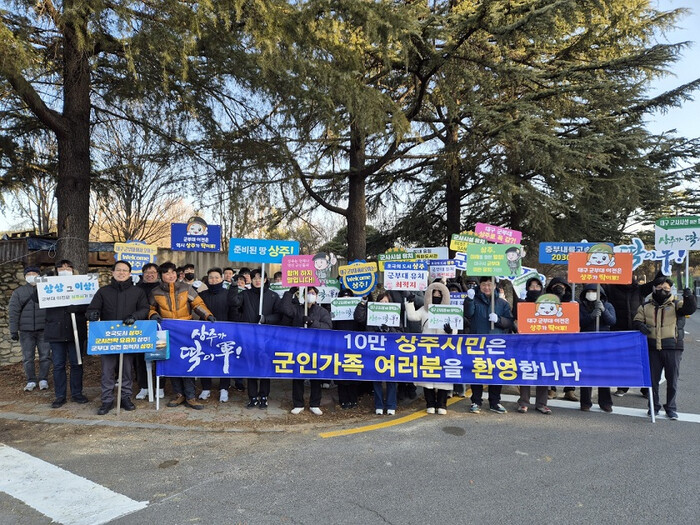[상주=박병상 기자] 상주시(시장 강영석)는 18일 오전 7시부터 대구 군사시설의 상주 이전을 강력히 소망하는 150여 명의 대구시 군사시설 이전 범시민 추진위원, 기관단체 회원, 공직자들이 한마음 한뜻으로 결집하여, '상주가 딱이군(軍)!'이라는 구호를 외치며 열렬한 피켓 홍보 활동을 펼쳤다.