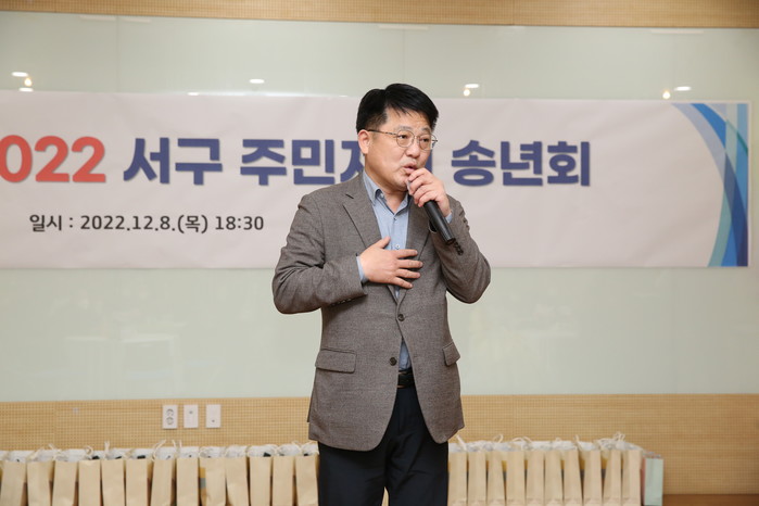 | ▲ 지난해 열린 서구 주민자치회 송년회에서 송년사를 하고 있는 한승일 의장. (사진제공=인천 서구의회) |