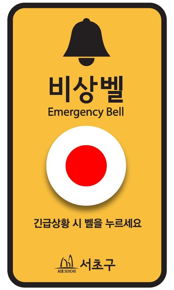 [시민일보 = 이대우 기자] 서울 서초구(구청장 전성수)가 올해부터 구에서 관리하는 공중화장실, 공영주차장, CCTV 등 설치된 비상벨에 ‘서초형 비상벨 디자인 표준안’을 적용한다고 밝혔다.